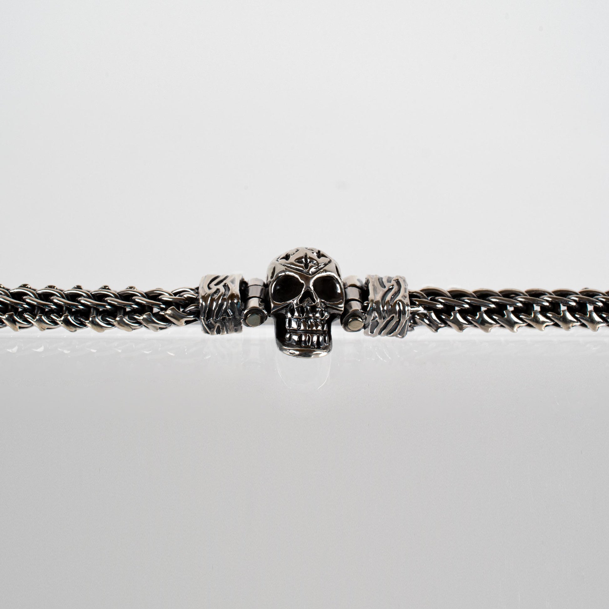 Meticulously handcrafted in a braided rope design, this striking piece is forged from pure 925 sterling silver. A masterful interplay of blackened and polished finishes lends depth, distinction, and a rebellious edge to its bold silhouette.